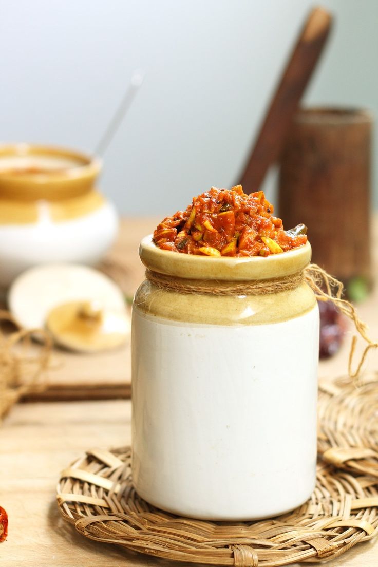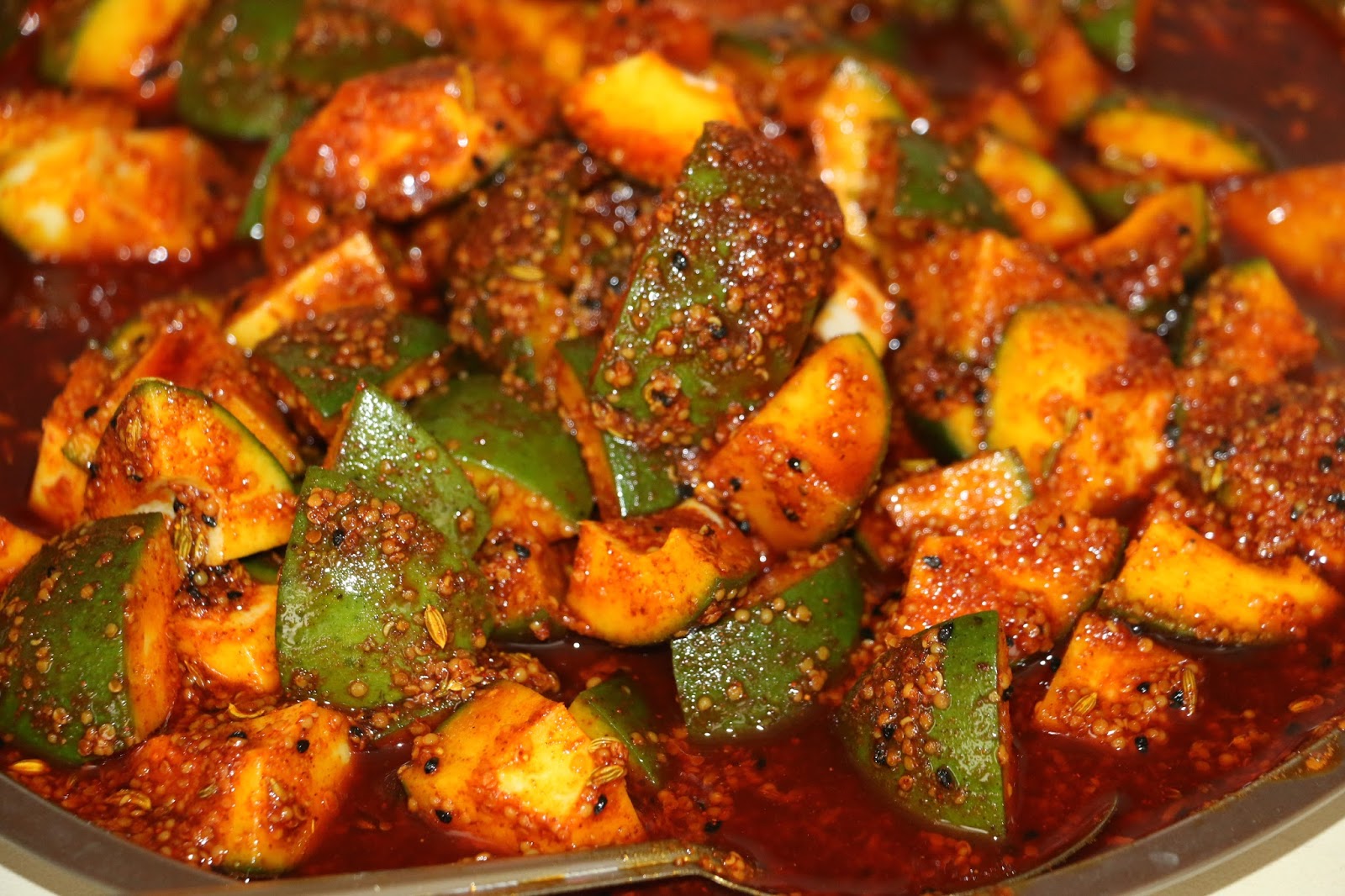 Spicy and tangy mango pickle made from raw mangoes.